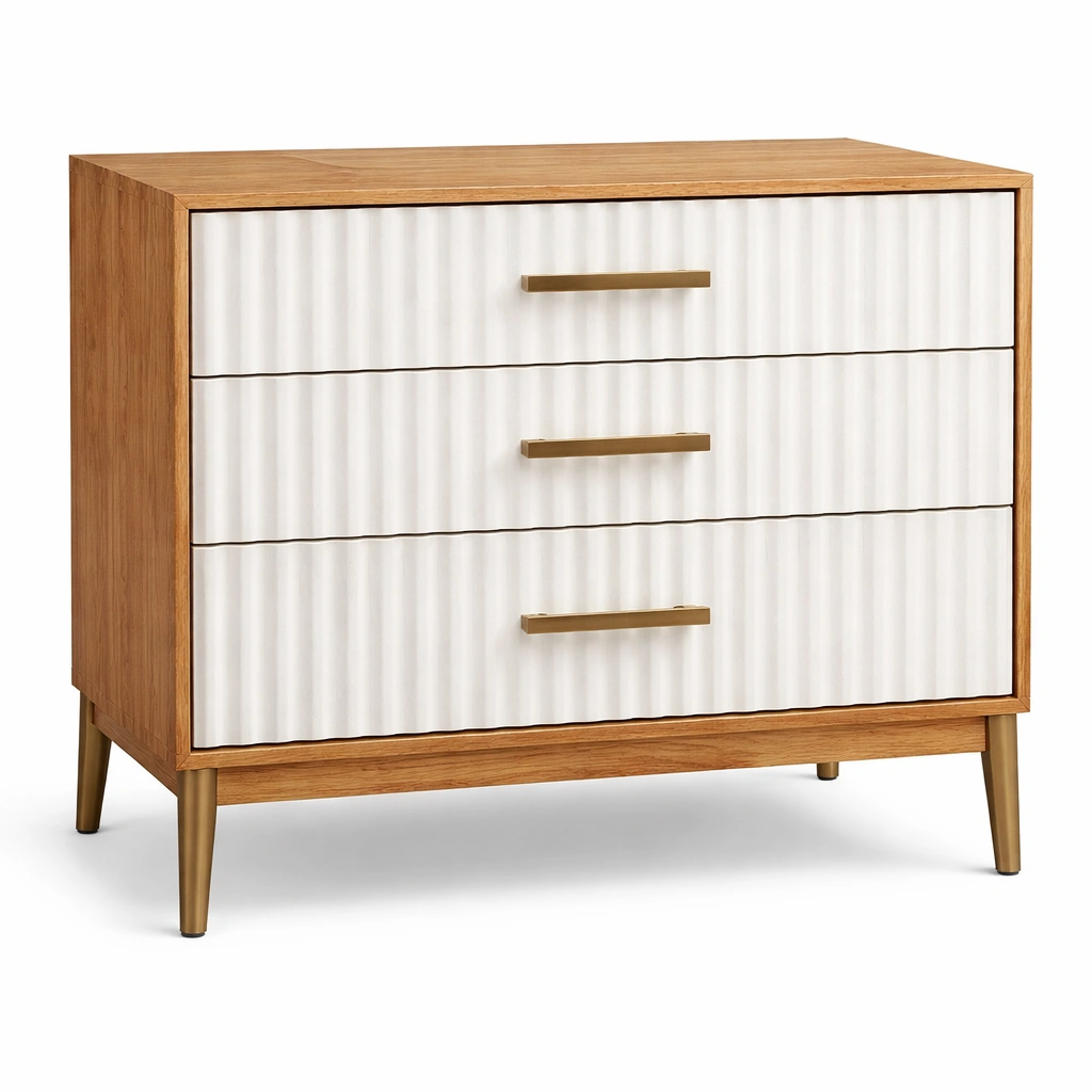 Cajonera de madera y cajones de MDF con tiradores metálicos dorados